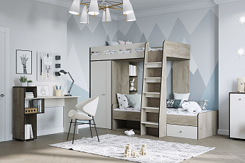 Антресольная секция Мали МЛ-16 (Белый/Дуб Вотан/Графит), Заречье