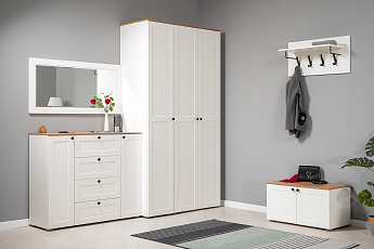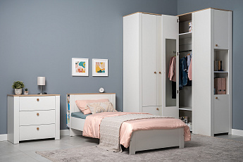 Шкаф Джастин угловой 13.229 (Белый PE шагрень/Дуб Белый exclusive OW D4430), Моби